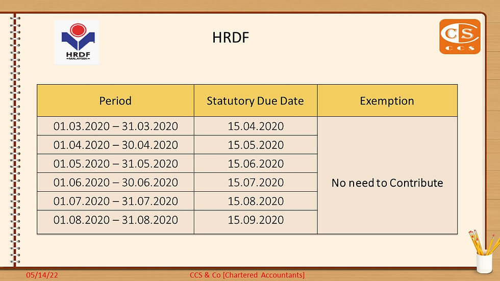 Summary Of Extension Due Date on EPF, SOCSO, EIS, SST, HRDF & CP 204 During CMCOCCSMay 15, 20201 min readUpdated: May 14, 2022View Now